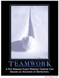 Hell! I even found No Dignity.com's corporate identity...Teamwork: A few harmless flakes working