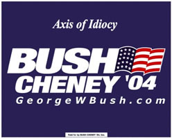 The posters seen throughout this article are courtesy of what happens when the Bush/Cheney campaign has the brilliant idea of letting anyone & everyone make their own campaign posters online. Thank you Sloganator, thank you ever so.